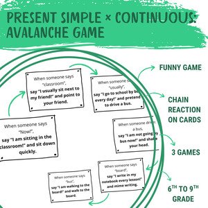 Zábavná pohybová hra, kde každá kartička s pokynem spustí další akci, jako lavina na horách! Žáci si procvičí použití