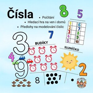 Kartičky s čísly - počítání puntíků, poznávání čísel, přiřazování - číslo, počet puntíků, počet obrázků, případně