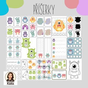 PŘÍŠERKY Soubor obsahuje: demonstrační obrázky půlené obrázky hledání stínů skládačky s čísly skrývačka třísložkové