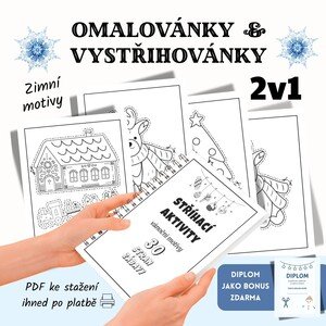 Zimní 2v1 sada: omalovánky + vystřihovánky na jednom listu. Děti vybarví, vystřihnou a mohou dále tvořit. Procvičuje