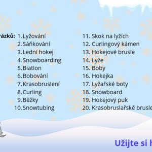 Obsahuje: úvodní list 20 karet na téma Zimní sporty "já mám, kdo má?"