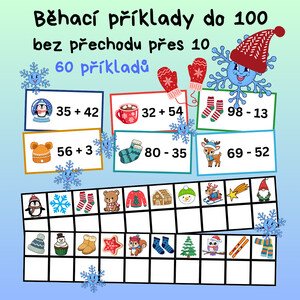 ☃️ BĚHACÍ PŘÍKLADY DO 100 BEZ PŘECHODU PŘES 10☃️ ❄️Nabízím k prodeji další materiál ze série běhacích příkladů v zimním