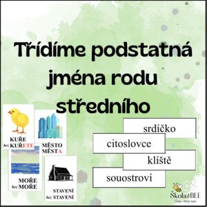Třídíme podstatná jména rodu středního 🔤 Materiál obsahuje 80 podstatných jmen rodu středního ve formě kartiček k