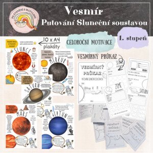 Materiál obsahuje: 16 stran A4 ke složení průkazu 1 strana A4 odpovědi na otázky 10 stran A4 plakátů Sluneční soustavy