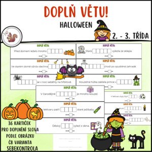 Soubor obsahuje 36 kartiček pro doplnění slova do věty podle obrázku s tematikou Halloween a doplnění počtu slov ve větě