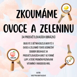 Objevte s dětmi kouzlo ukryté v ovoci a zelenině! Tento jedinečný soubor obsahuje 34 prosvětlovacích karet ve formě lupy