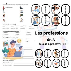 Materiál Les professions – pexeso + pracovní list (A1) je určen pro výuku francouzštiny na úrovni A1. Obsahuje kartičky