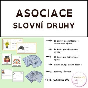 Materiál Asociace - slovní druhy je zhotoven na bázi didaktické hry a se skládá ze tří částí. První z nich je zpracovaná
