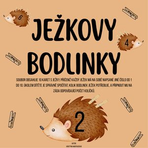 Ježkovy bodlinky 🦔: Kolíčkování pro malé počtáře Popis materiálu: Seznamte se s 10 ježky, kteří potřebují pomoci s