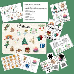 Materiál na téma vánoční dárky slouží k procvičení barev a je vhodný k tématu Vánoce. Obsahuje 124 kartiček (1 strana =