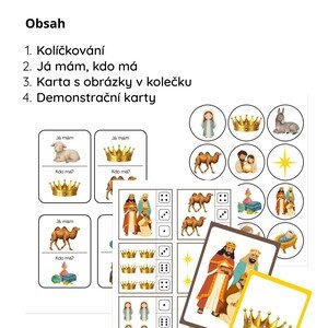 Tři Králové Komplet materiálů, který lze využít v mateřské škole. Tento soubor obsahuje 12 kartiček Kolíčkování (2 velké
