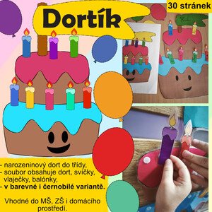 Dortík 🎂 Dortík je soubor jednotlivých částí dvoupatrového dortu s polevou. Můžete ho využít jak ve školce či škole (k