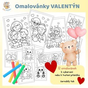 12 omalovánek na téma Valentýn, láska, srdíčka Využití: klasické vybarvování k vytvoření přáníčka k vytvoření girlandy