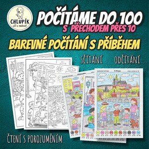 Barevné počítání pro zábavné procvičení sčítání a odčítání do 100 během matematiky. Na druhé straně najdete krátký