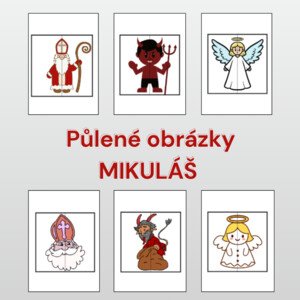 Co v materiálu najdete: 6 půlených obrázků s motivy Sv. Mikuláš, čert, anděl zábavné procvičení zrakového vnímání K čemu