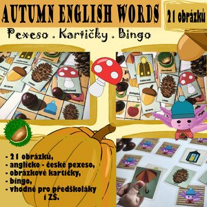 Autumn English Words🍁 - pexeso, kartičky, bingo Užijte si s dětmi podzim plný barev, slovíček a zábavy! Tento soubor
