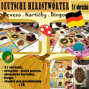 🍂 Deutsche Herbstwörter Spielerisch Deutsch lernen V této podzimní sadě najdete: 🎴 Pexeso – trénuje paměť a slovní