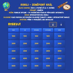 Riskuj! - Zeměpisný král Je digitální znalostní soutěž určená pro dva týmy (Tým A a Tým B), která simuluje formát