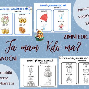 Zimní sada didaktické hry “Já mám kdo má” - vánoční - černobílá / barevná verze - zimní - černobílá / barevná verze