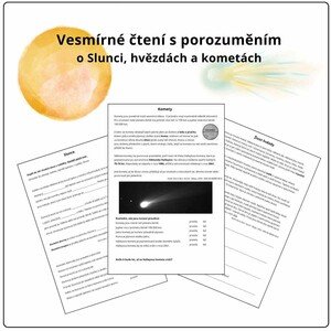 Čtení s porozuměním o Slunci, hvězdách a kometách. Soubor obsahuje 3 pracovní listy s texty o vesmíru. Žáci doplňují