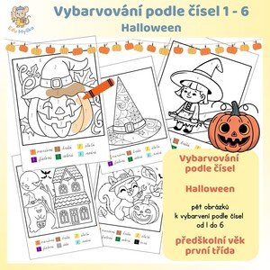 Materiál obsahuje 5 obrázků s halloweenskou tematikou. Jednotlivé části obrázků jsou označeny čísly od 1 do 6. Každé