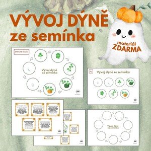 Cesta dýně ze semínka až k plodu. Obrázky na straně číslo 2 slouží k rozstříhání. Děti je následně lepí či pouze