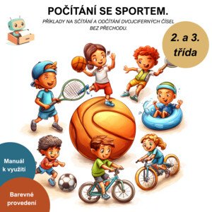 Výukový materiál se sportem tematikou pro 2.–3. ročník ZŠ. Obsahuje barevné kartičky s deseti příklady na sčítání a