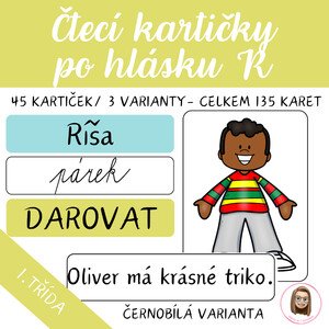 Čtecí kartičky po hlásku K, které dětem pomohou jistě a hravě zvládnout první čtenářské pokroky. Soubor obsahuje celkem