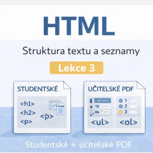 Materiál HTML – struktura textu a seznamy (Lekce 3) je určen pro začátečníky v HTML a navazuje na předchozí lekce