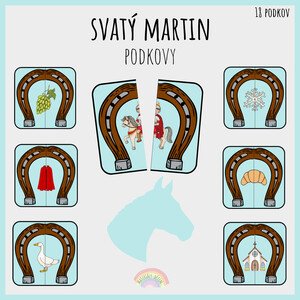 Soubor obsahuje celkem 18 kartiček, z nichž každá zobrazuje podkovu s tematickým obrázkem vztahujícím se ke svátku