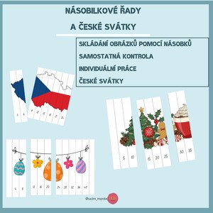 Pomůcka obsahuje 9 obrázků, z nichž každý je rozdělen na 10 proužků. Každý proužek má na sobě číslo z určité násobilkové