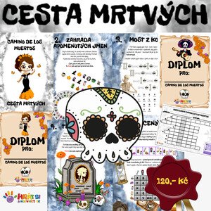 Stezka na ven i na doma na Halloween (téma Dia de los muertos - Den mrtvých). CESTA MRTVÝCH je hra určená ke zpestření