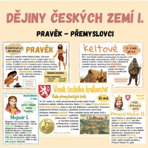 První část dějin českých zemí: Materiál obsahuje 45 výukových plakátů, které přehledně představují dějiny českých zemí
