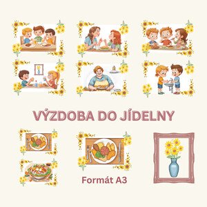 Materiál obsahuje 13 A4 stran – 26 A5 karet k výuce nebo k výzdobě. Ručně malované a kreslené obrázky.