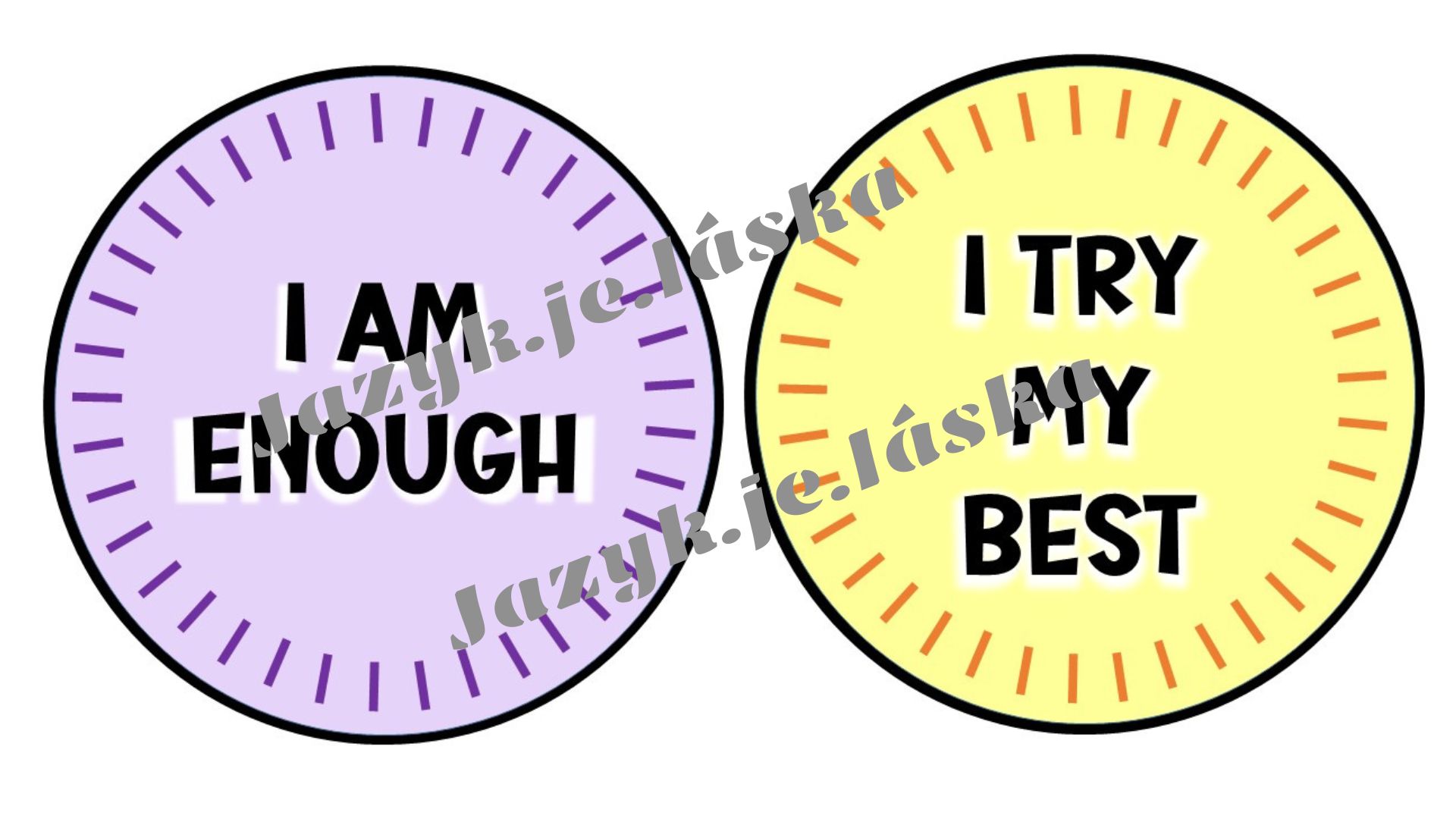 Soubor 12 afirmačních kartiček v AJ vhodných jako výzdoba školní třídy. Kartičky jsou zaměřené na podporu sebedůvěry, motivace a pozitivního klimatu ve třídě. Lze je využít při ranním kruhu, třídnických hodinách nebo jednoduše jako stálou vizuální podporu pro žáky.