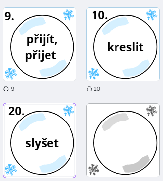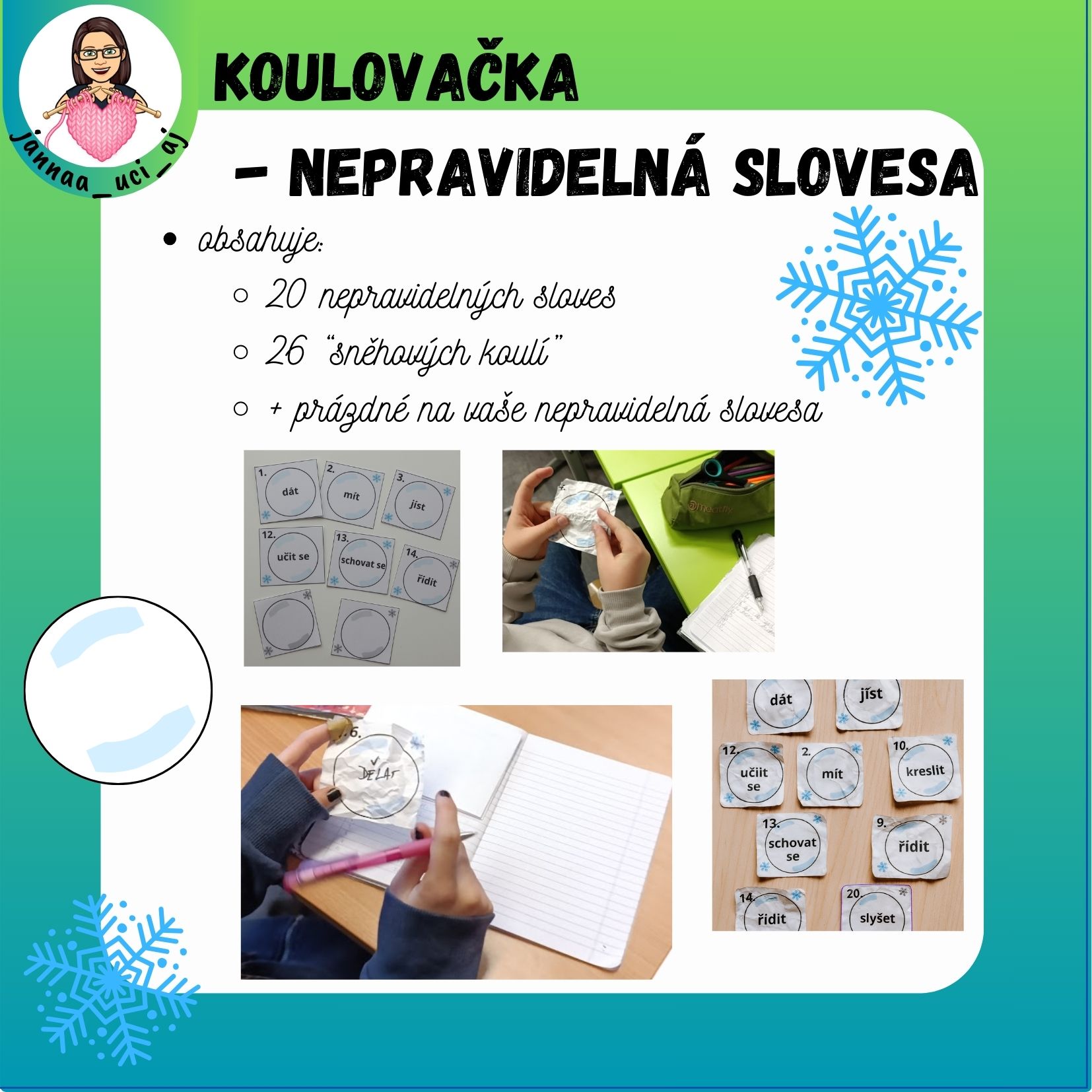 - Šest koulí je tzv. slepých - šedé ledovky – nejsou na nich nepravidelná slovesa. Žák místo odpovědi udělá 5 dřepů nebo 5 kliků (dle předchozí domluvy).