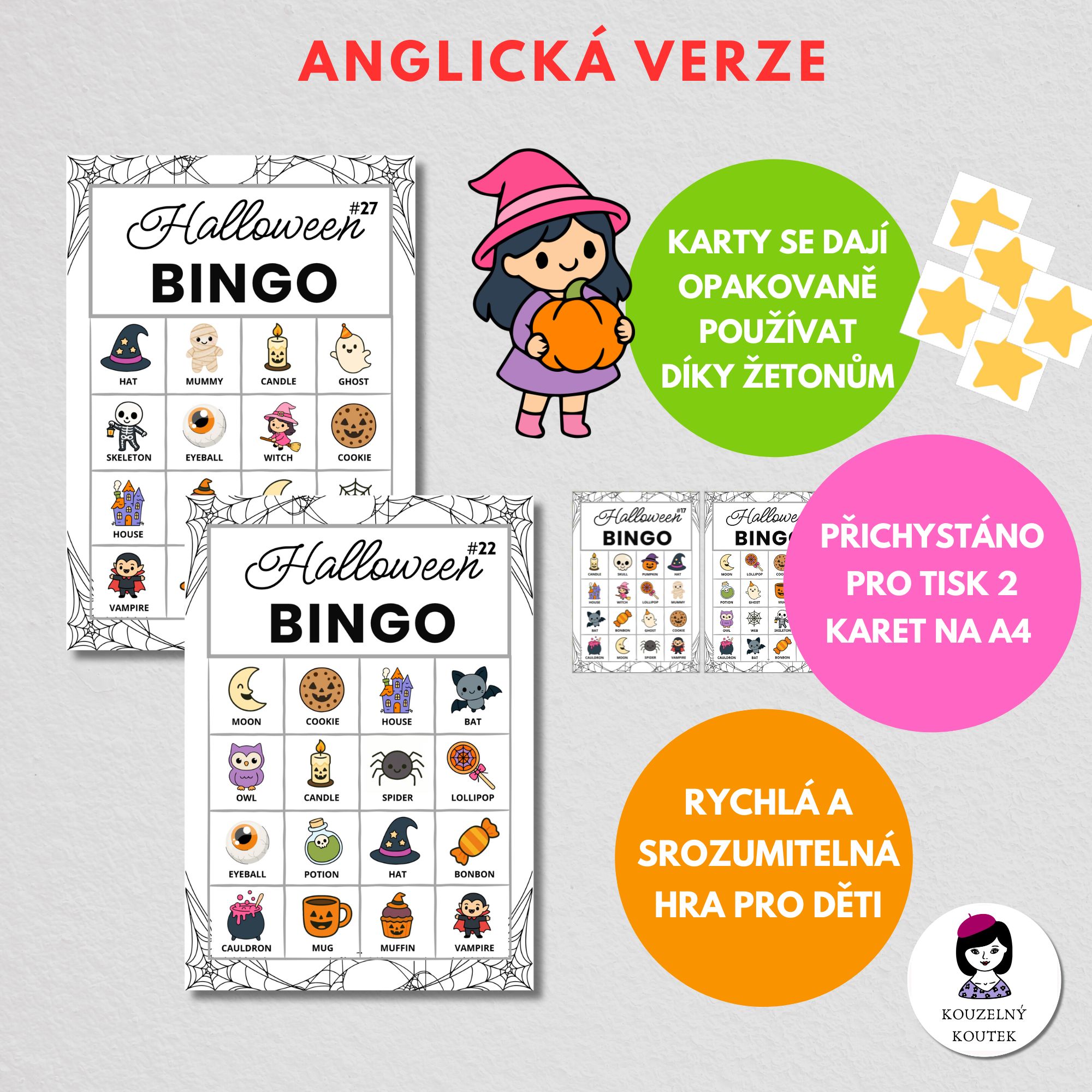 ⭐díky žetonům lze bingo karty používat stále dokola