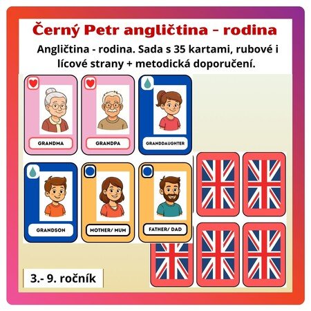 Materiál na motivy známé karetní hry Černý Petr. V souboru najdete karty i s jejich rubovými stranami a metodická doporučení s různými dalšími obměnami her. Každá dvojice karet má i své symbolické označení. Můžete vytisknout oboustranně s rubovými stranami anebo jednostranně a následně s rubovými stranami slepit.