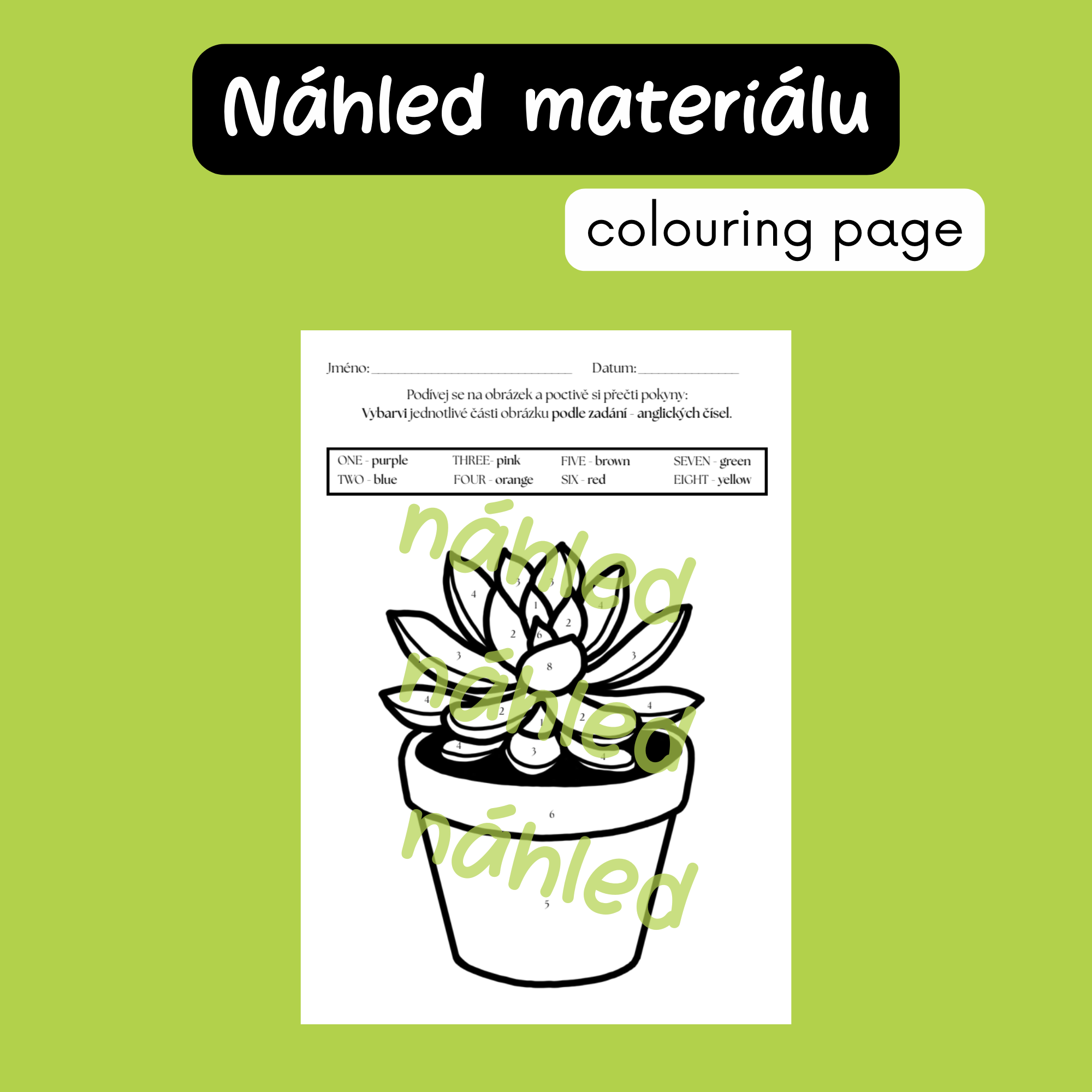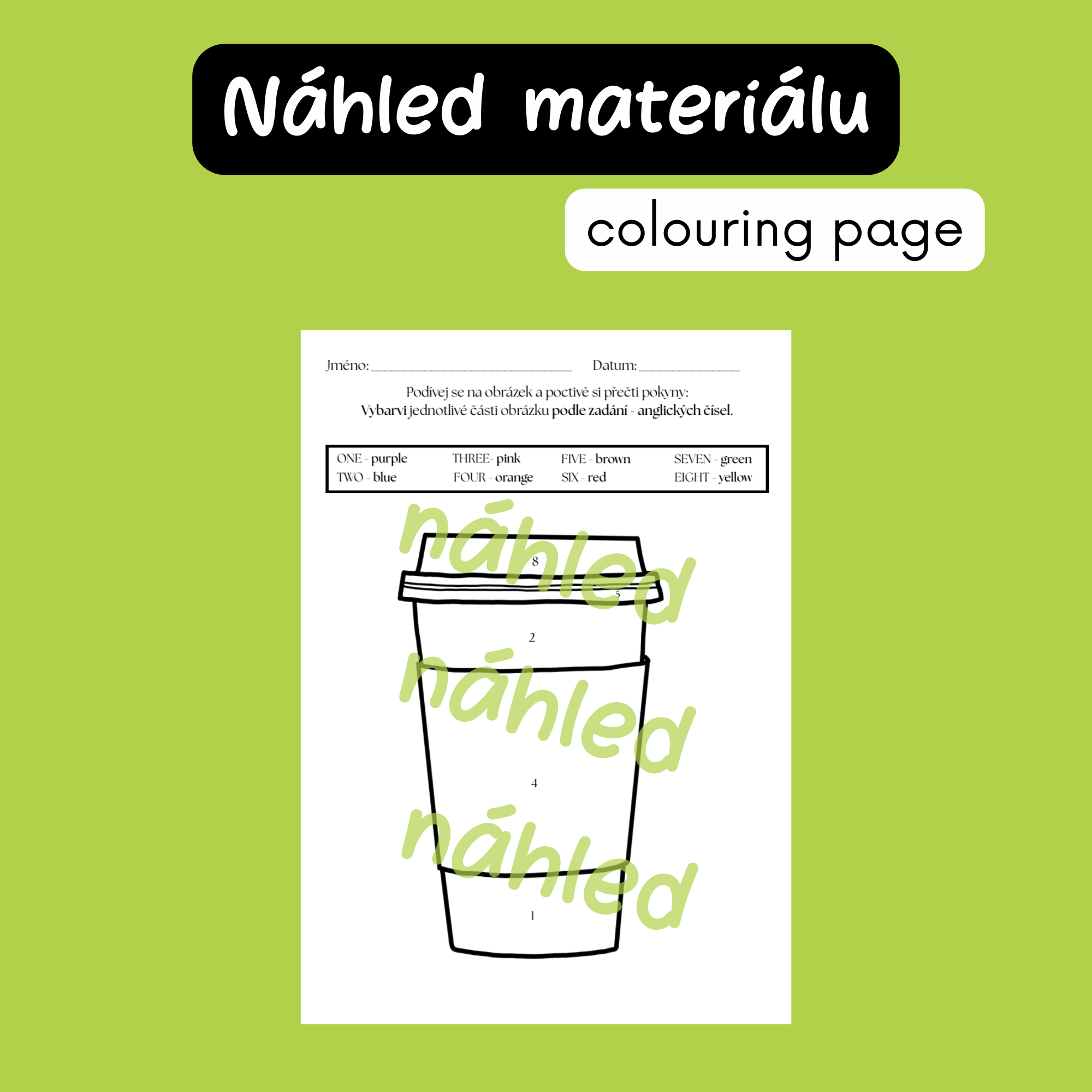 - ANGLICKY psaná čísla a barvy