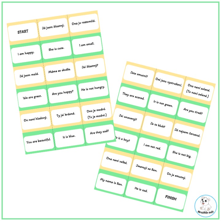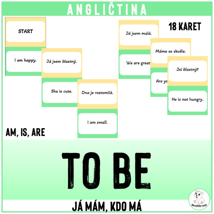 Učitel nejprve žákům připomene základní tvary slovesa to be a vysvětlí pravidla hry. Poté rozdá karty a nechá žáky, aby si je v tichosti přečetli. Začíná hráč, který má kartu s nápisem ,,start“ a nahlas přečte anglickou větu ze své karty. Žák, který má na své kartě její český překlad, se přihlásí a přečte nejprve tento překlad a následně svou další anglickou větu. Tím předá slovo dalšímu spolužákovi. Hra pokračuje, dokud se do řetězce nezapojí všichni žáci a nedojde k jeho uzavření (končí hráč s nápisem ,,finish“).