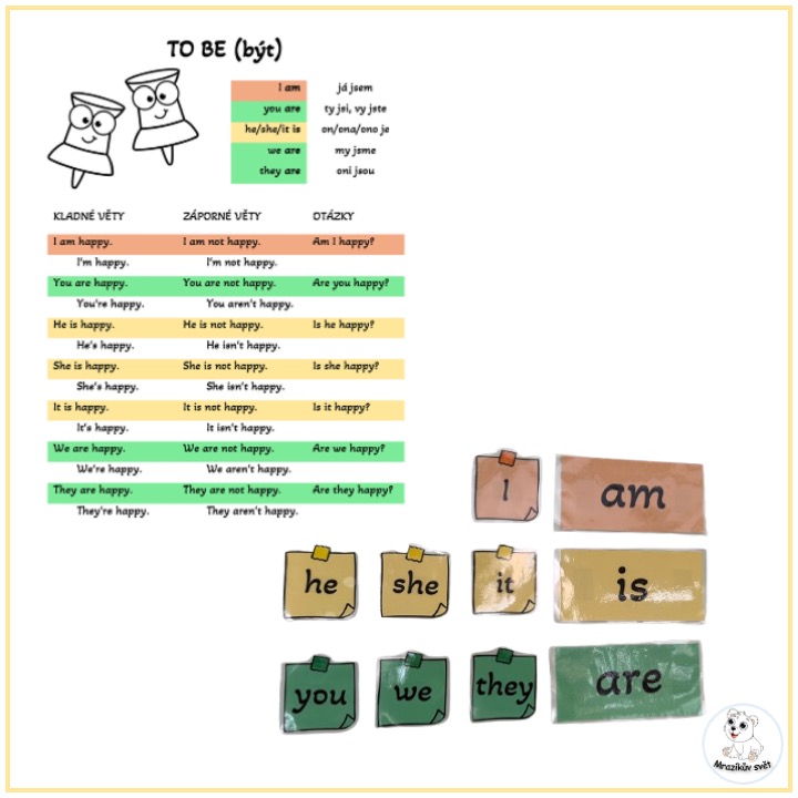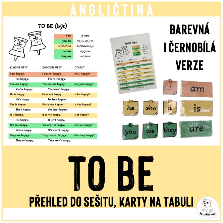 Tento materiál nabízí stručný a přehledný gramatický souhrn ke slovesu ,,be“.