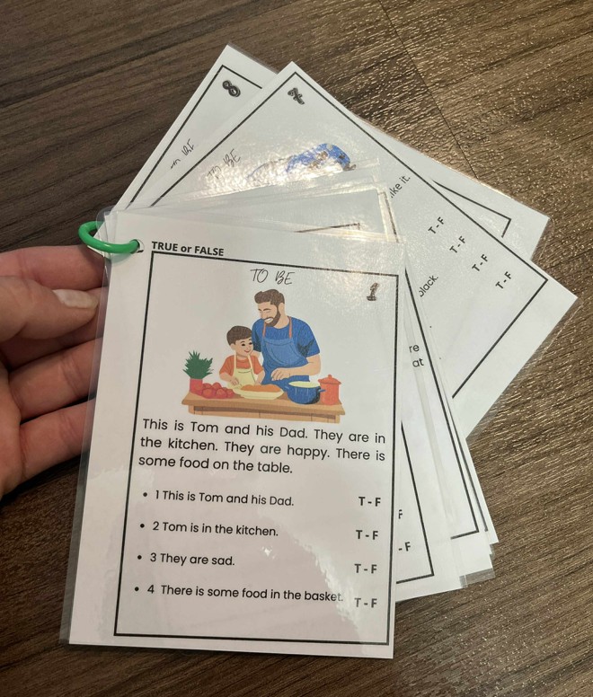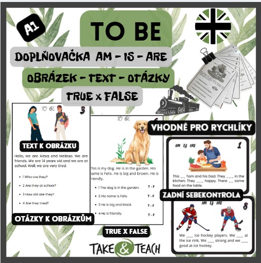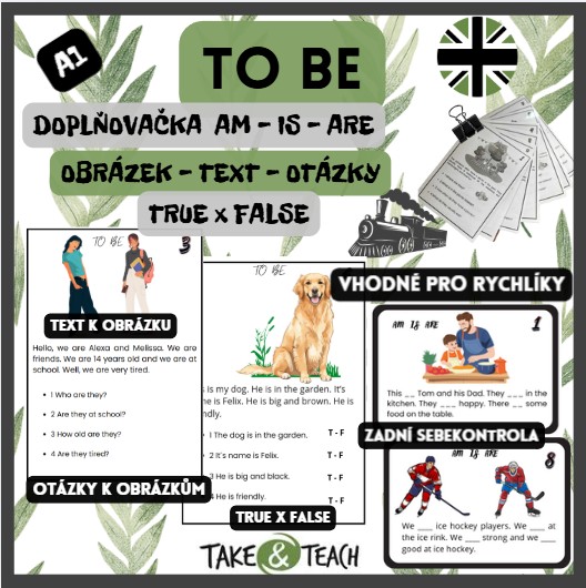 Procvičte s žáky aktivity na porozumění textu a užití slovesa BÝT v kontextu. Obrázek, krátký text a otázky procvičí formu AM-IS-ARE. Lze také využít mini kartičky na doplňování slovesa do textu k obrázku. Se zadní sebekontrolou. VHODNÉ PRO RYCHLÍKY.