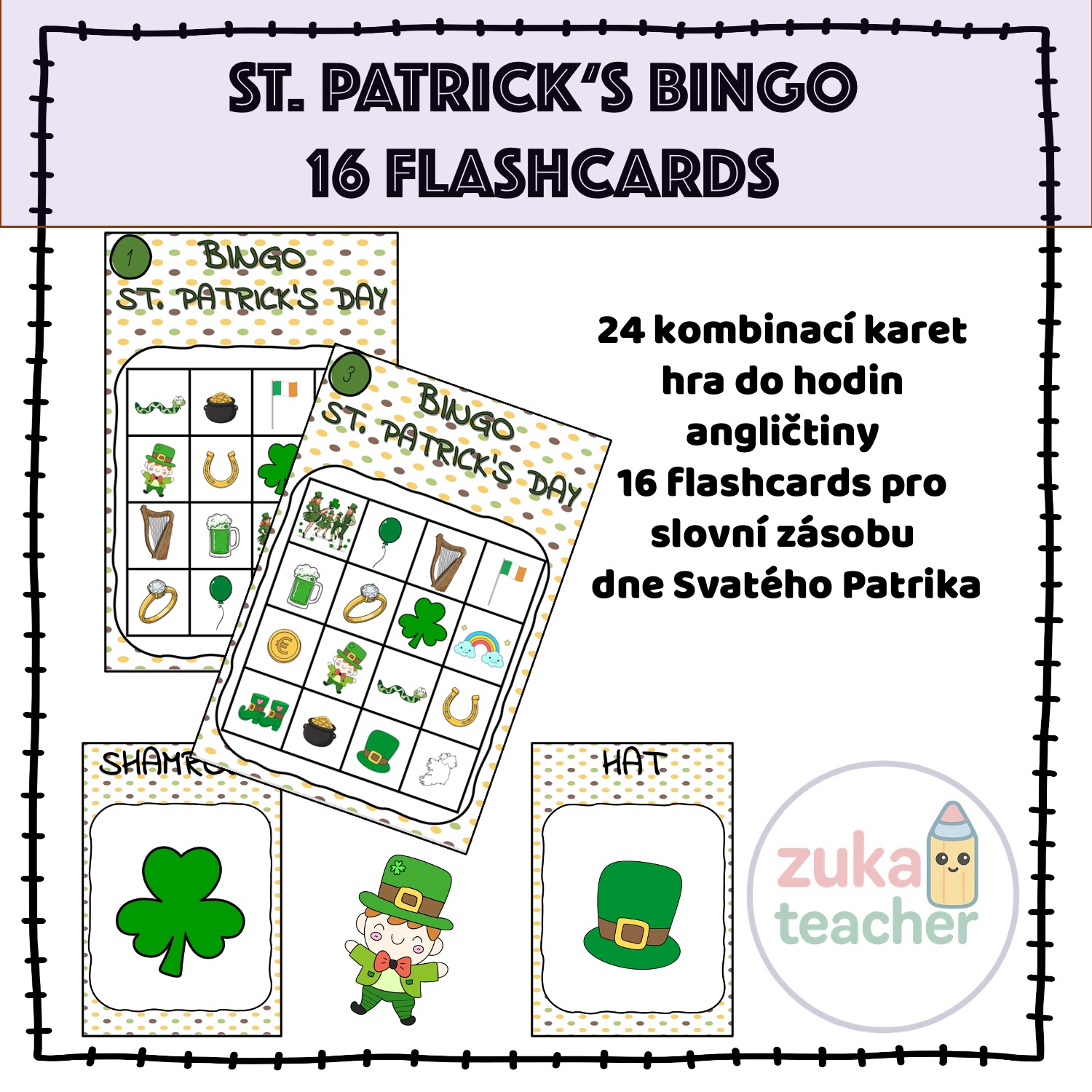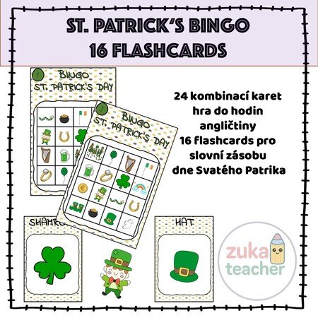 Hra BINGO do hodin angličtiny –slovní zásoba na téma den Svatého Patrika.