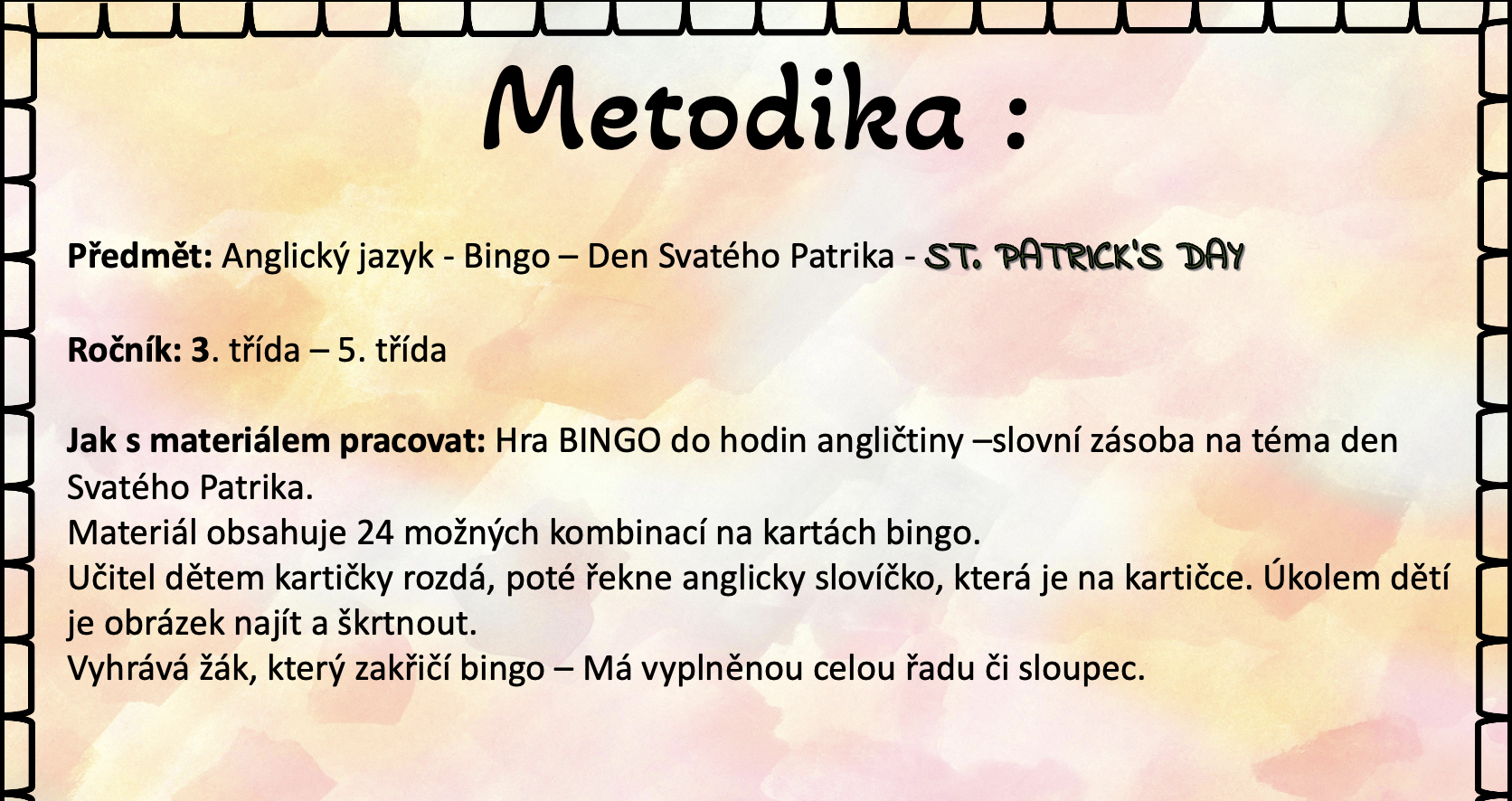 Materiál obsahuje 24 možných kombinací na kartách bingo.