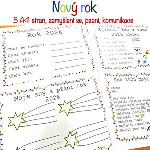 Materiál se skládá z 5 A4 stran. Děti si zavzpomínají, jaké zážitky během roku prožily, napíší své přání a plány pro rok