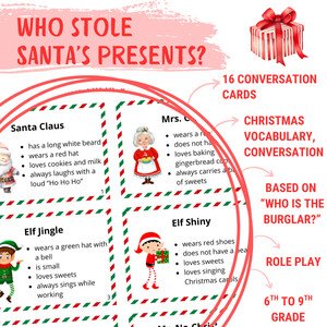 - žák s touto kartičkou řekne "SANTA" a někdo další, kdo má na kartičce "When someone says "SANTA", say "HO HO HO"." pokračuje a řekne "HO HO HO"