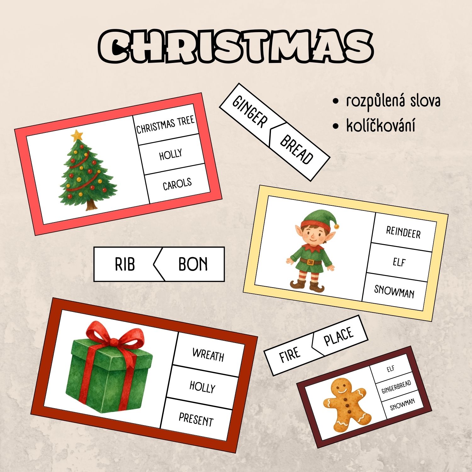 Christmas - kolíčkování a rozpůlená slova