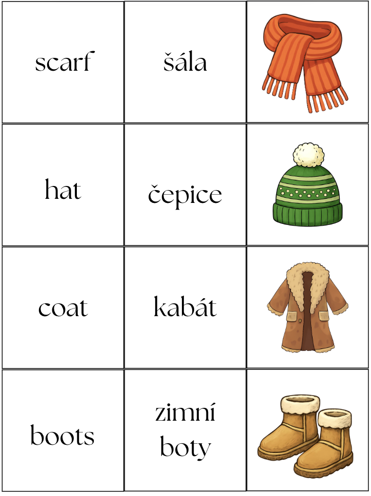 - slovíčka vhodná pro 3.–5. ročník ZŠ