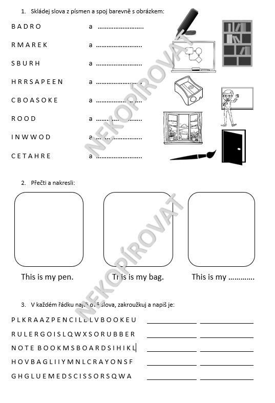 Cílem materiálu je upevnění slovní zásoby na téma CLASSROOM OBJECTS. Procvičujte slovní zásobu.