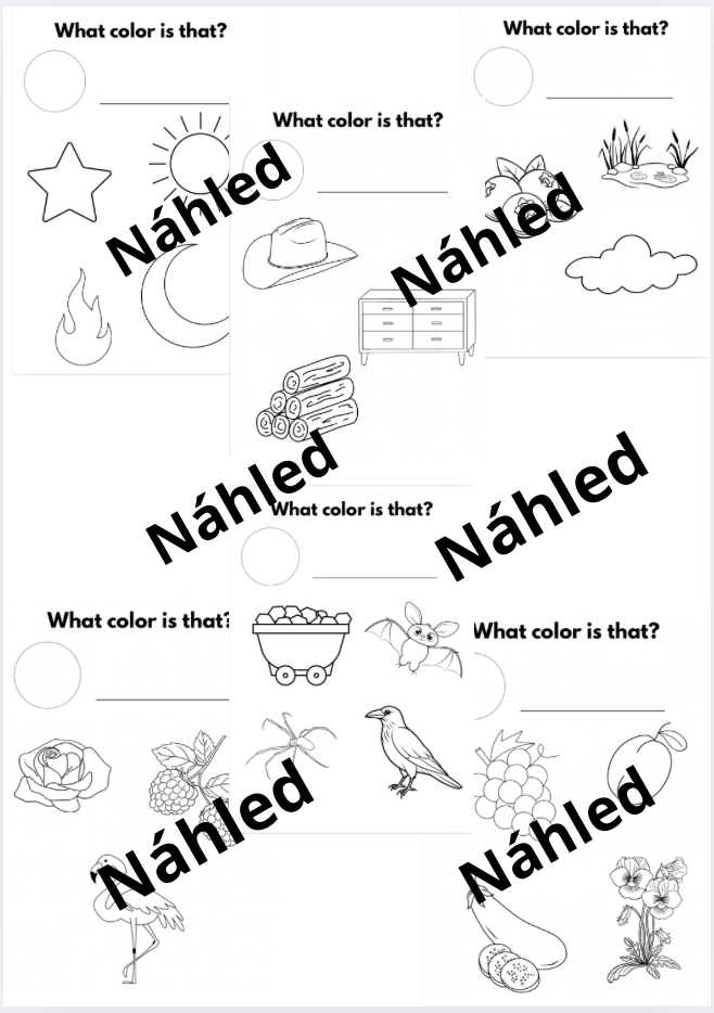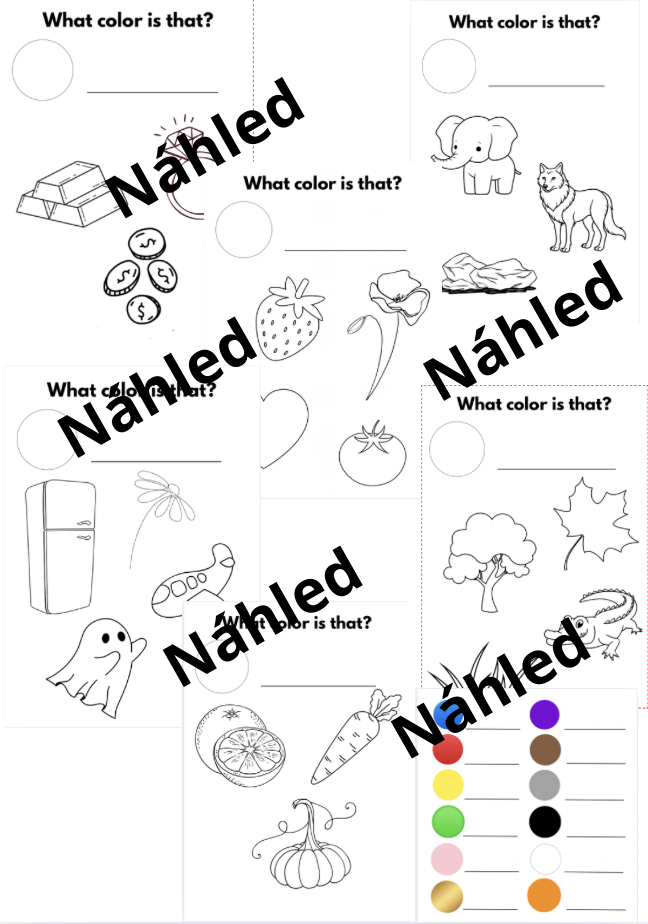 Materiál obsahuje soubor 12 ti pracovních listů. Pracovní listy prověřují znalosti barev v anglickém jazyce. Poslední list slouží k opakování všech barev, můžete ho využít i jako test.
